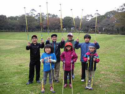 (1)木場公園ふれあい広場集合受付・保護者説明会⇒オリエンテーション⇒準備体操